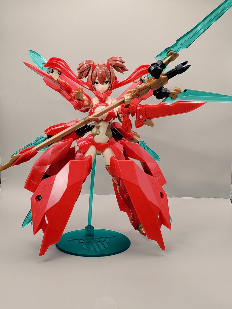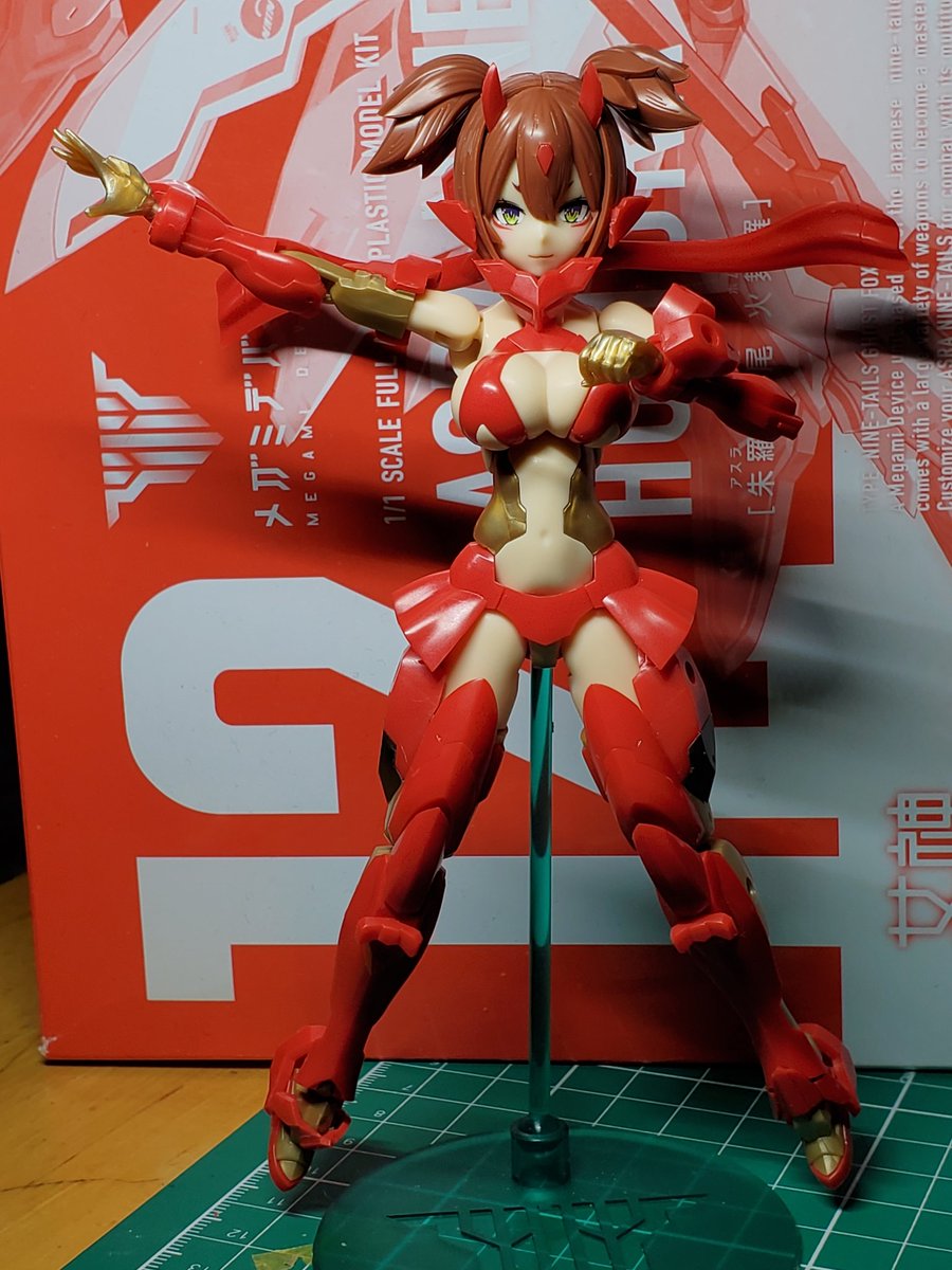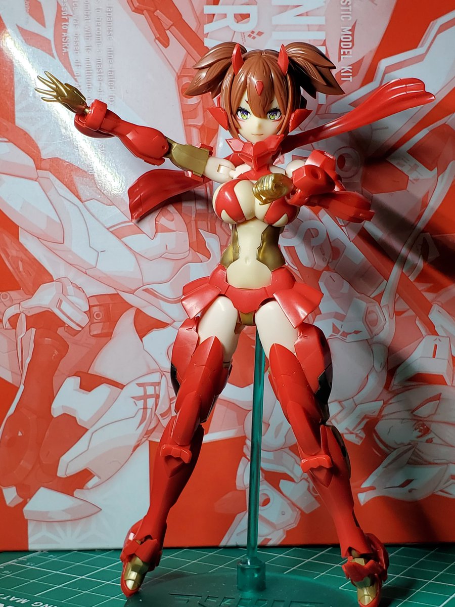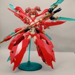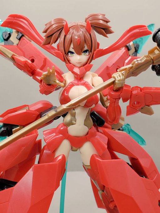 #メガミデバイス #MSG #コトブキヤ #美プラ 作った赤九尾に、MSGトップスとボトムスをつけてみた。トップスはあんまりインパクトないなぁ…。ボトムスはK2回りがボリューム出るけど…。なんかボディ改修案ないかなぁ…。次予定のアリスに搭載するか⁉️ twitter.com/gof3072/stat…