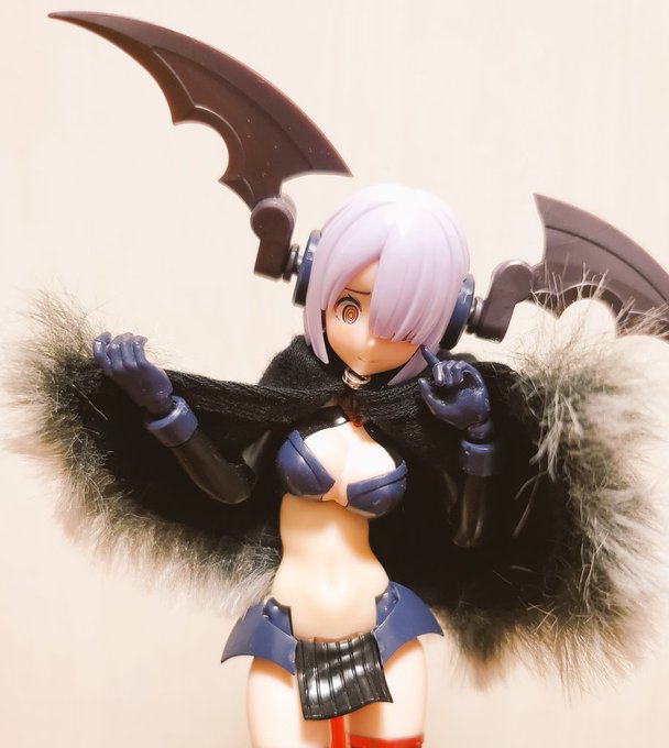 #メガミデバイス #美プラ #コトブキヤ いのう商店様@akiba_inouにて購入した@soratobieiさんのもふもふコートを家のエクスキューショナーちゃんに装備しました。黒まどかに使う予定で買ってみましたが…うん!これもカワユス( *´艸`)