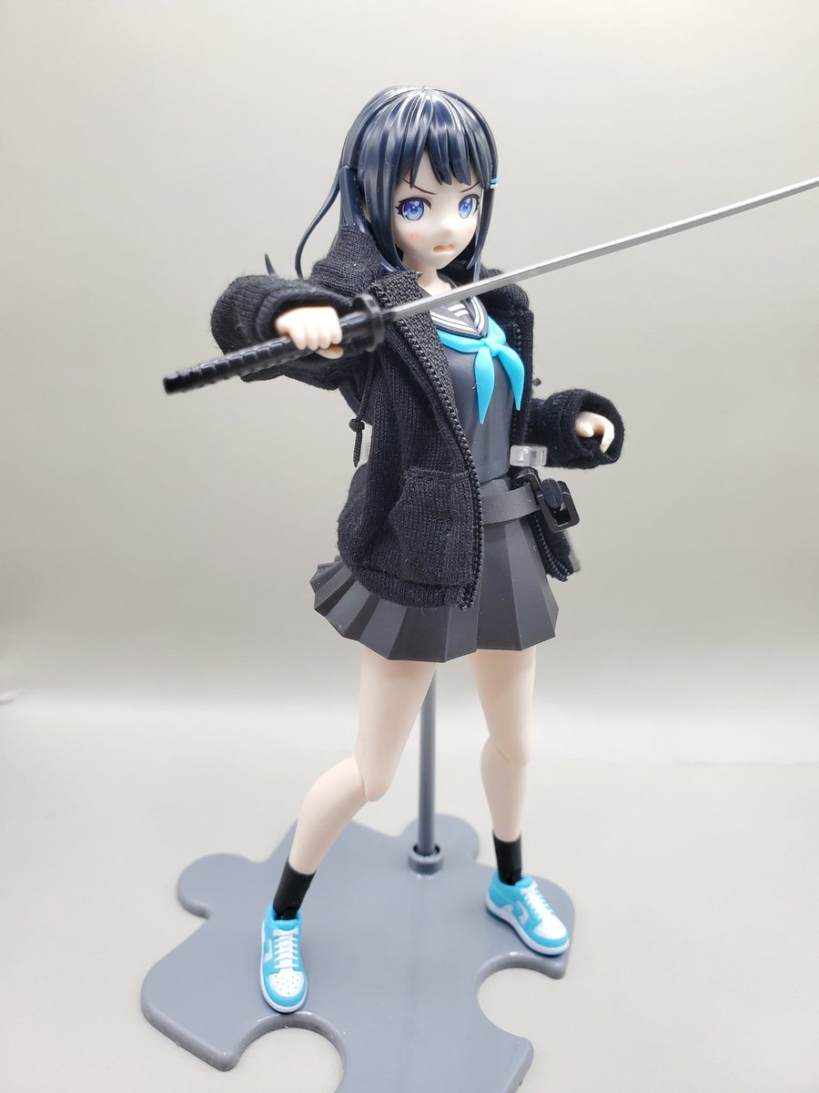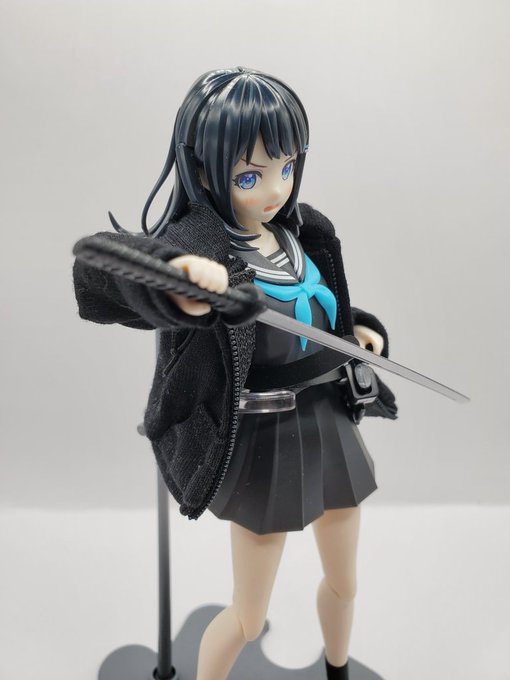 #創彩写真部 #コトブキヤ #プラモデル ZOZOTOWNまどか•パーカーセットやってみました。黒セーラーとなると日本刀ってイメージになるのはBLOOD THE LAST VAMPIREの印象が強いのかなぁ…( ´ー`)。刀持たせると、なんかしっくりきます。パンツがパール塗装はいってるのにビックリでした🐱