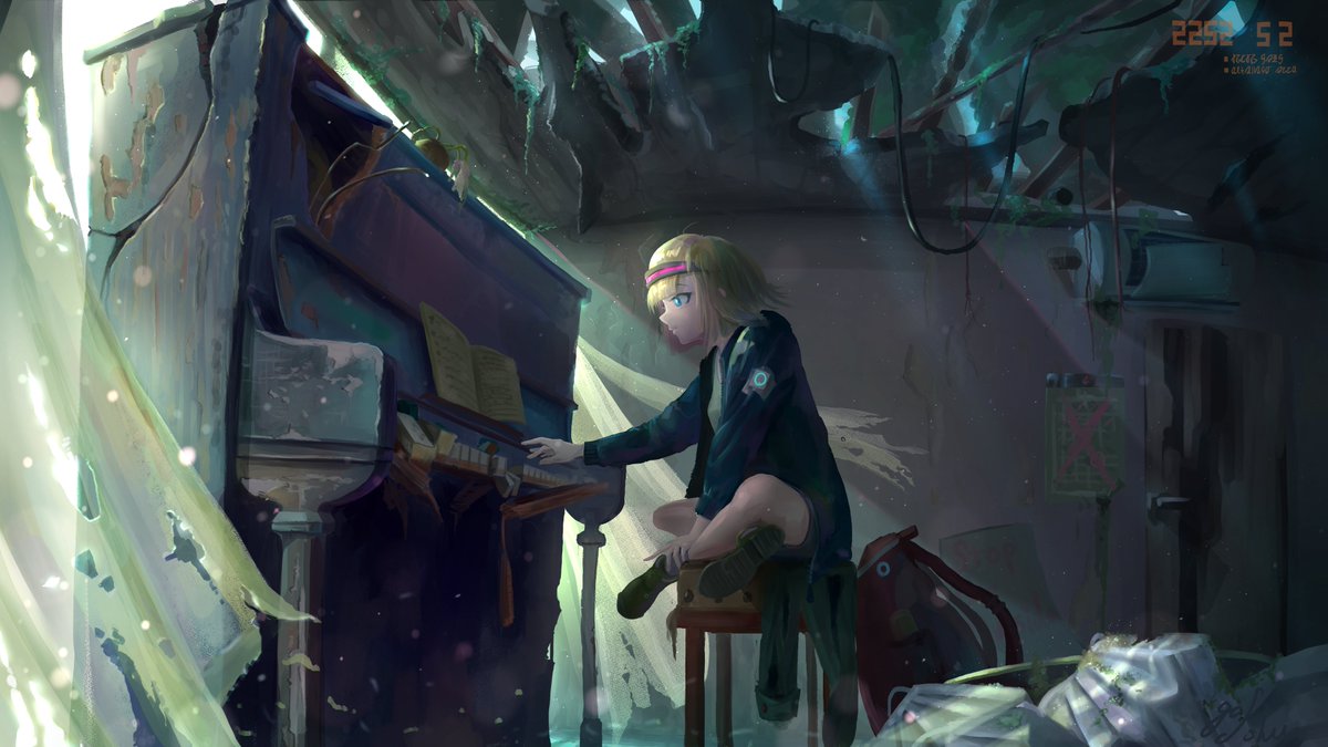 #絵描きさんと繋がりたい #芸術の輪 #デジタルイラスト 「無音を聴く.jpg」 かつてピアノがあった生活ー