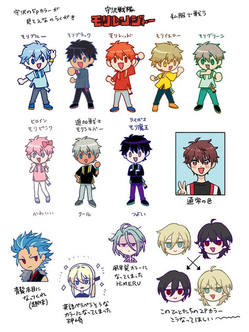 TLで推しの2Pカラーが見たいという話で盛り上がって描き始めたら8Pカラーまで増えた絵