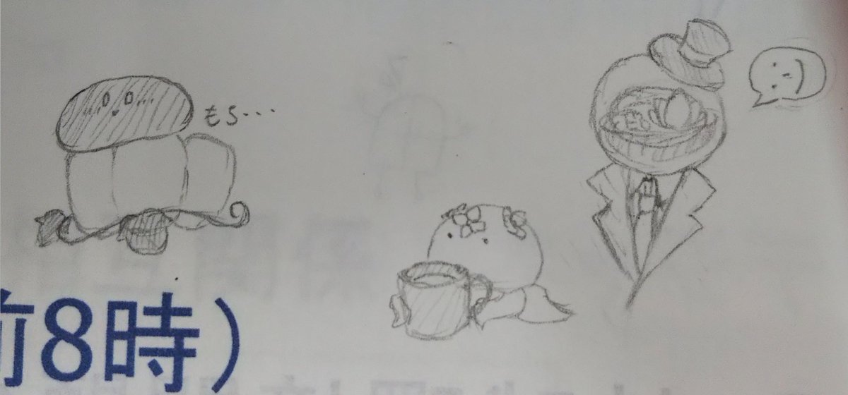 1 14 落書きした。ひと、かけん。 人外描くの楽しい。 かぼちゃもちさんとホットミルクをくれるくらげと:-)テラリウムさんとはねるまどさん 21/10/19 12:05