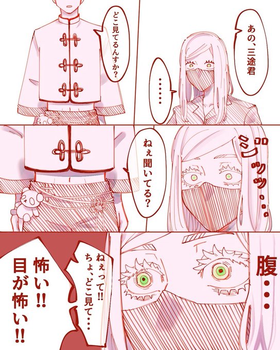 508 5667 「チャイナ🎍を無言で舐め回すように見つめる3️⃣」のリクのサン武です (3枚目は差分) n番煎じな上に舐め回すっていうか腹しか見てない3️⃣になっちゃったけど許して… 22/04/24 18:25