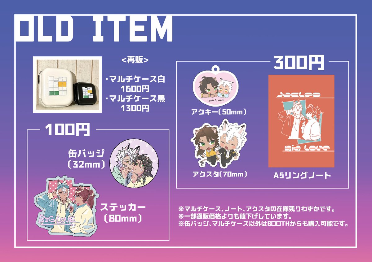 7/24のおしながきです! ポストカードラリーにも参加してます🥳 ツリーに新刊サンプル載せてるのでどうぞ🙇♂️ #夕焼け色に染まる牙 #JLC参加