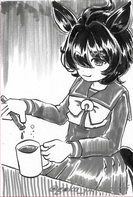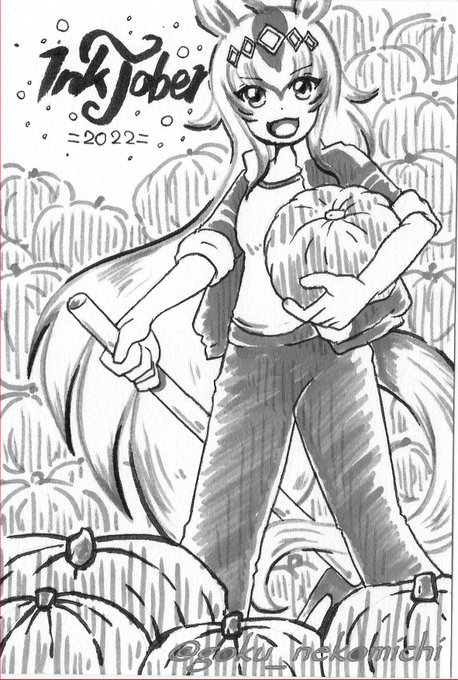 #今月描いた絵を晒そう #ウマ娘 というわけで!Inktoberお題、31日毎日描きました!アナログ絵はちょっとした筆先の力の入り抜きで線がまったく違うのに、Ctrl+Zもマスクもレイヤもないのが大変でした…アナログカラー絵描いてる人は超人なのでは? 見てくださった方、ありがとうございました!