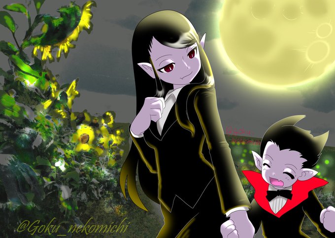 お題:「ひまわり」 前にも描いた(twitter.com/goku_nekomichi…)けど、大大大好きなお話なのでまた描いた! ミラさんとちびドラちゃんとひまわり畑🌻 #吸死版60分一本勝負