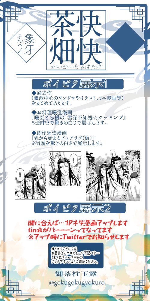 136 854 お題【占い】お借りしました。 前に呟いた恋に悩める(?)乙女チック(?)曦臣、、、を絵に… #曦澄ワンドロワンライ #xicheng 23/05/07 09:19