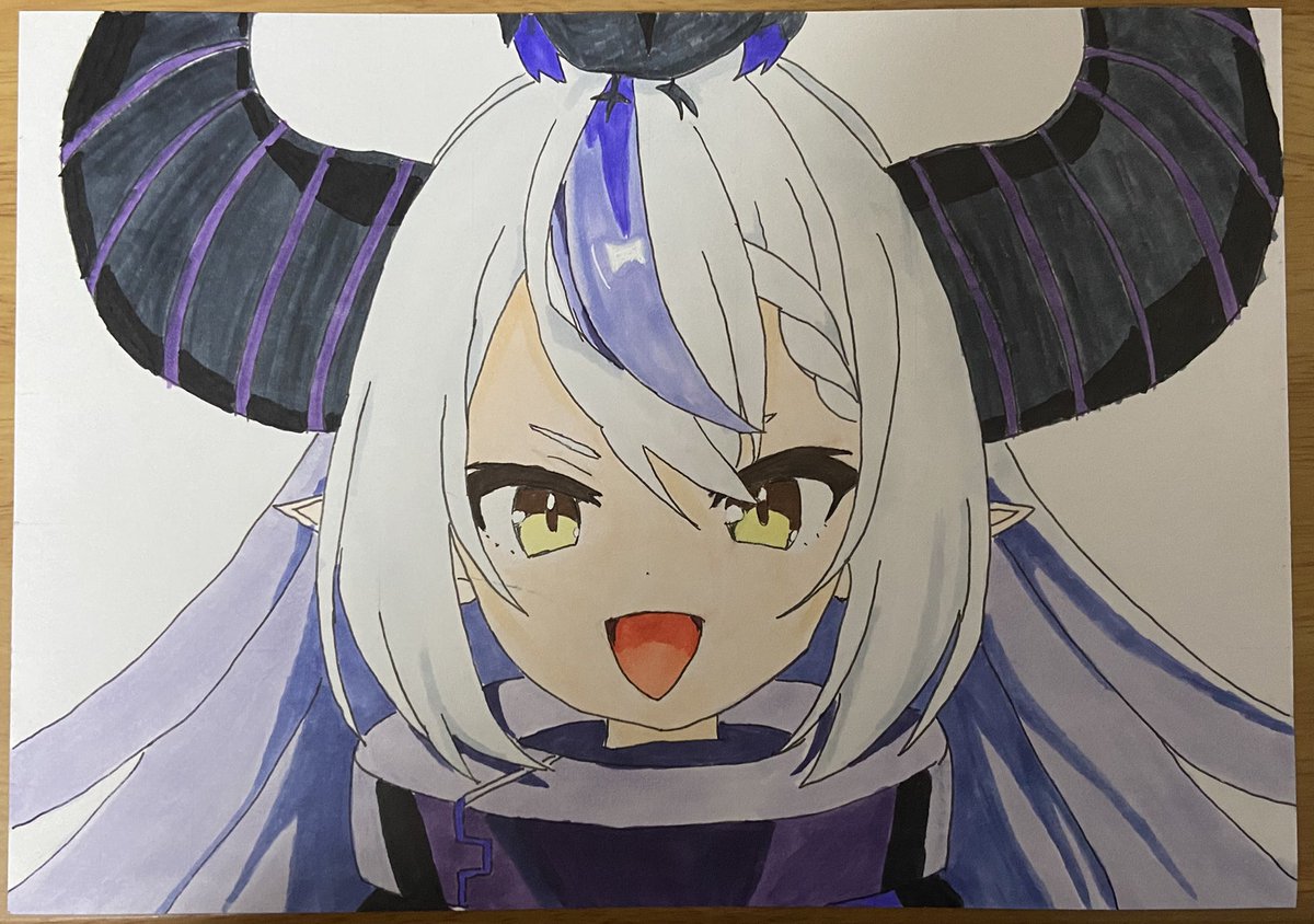 ラプ様の色塗り終わりました〜!久しぶりに色塗ったからめっちゃむずかった笑 次は何描こうかな🤔😕 #ホロライブ #ホロライブ6期生 #ラプラスダークネス #アトリエの系譜 #イラスト #模写 #絵描きさんと繋がりたい