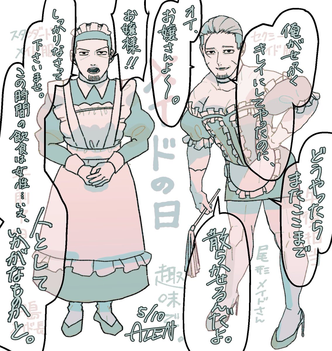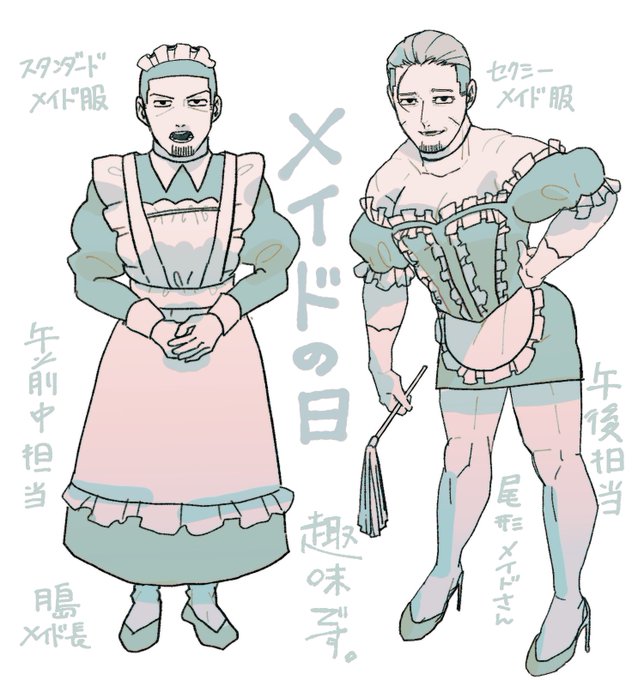 【女装注意】 メイドの日ってことでお二人に着てもらいました。描くの楽しかったので他の人にも着てもらうかもしれません。 #金カ夢