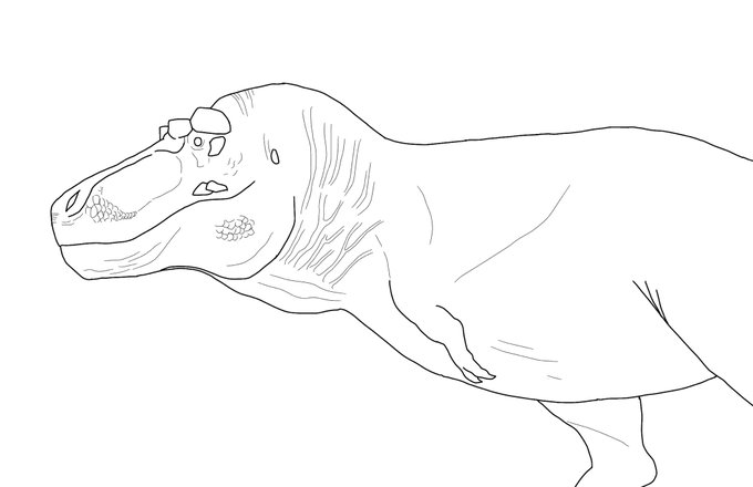 ゲームとか映像作品でギガノトやスピノは設定や見た目盛られるのに、ティラノは一向に盛られないから痺れを切らして見た目設定盛りに盛ったティラノサウルスを描きました #ティラノサウルス #tyrannosaurus