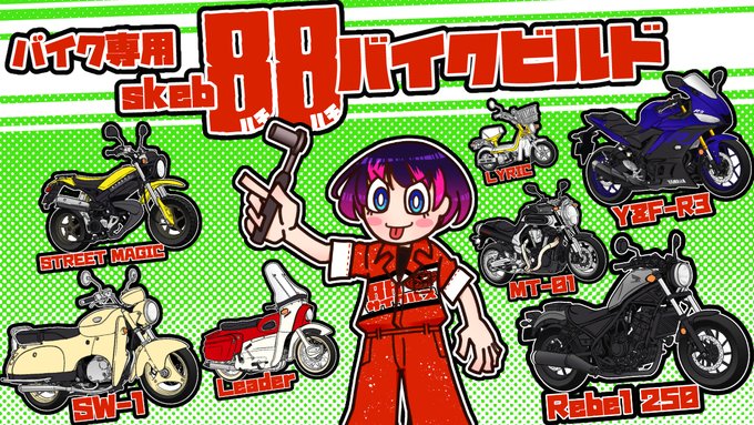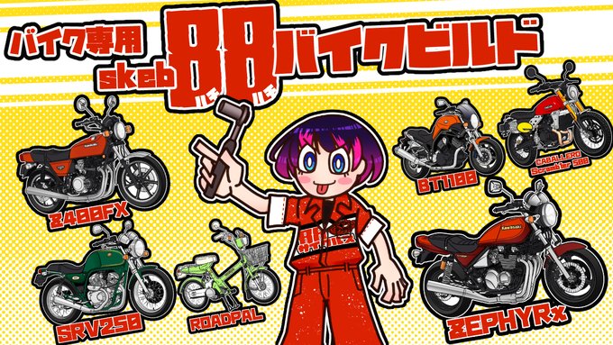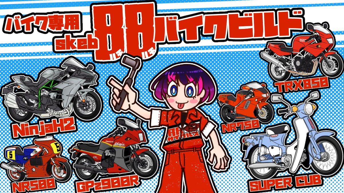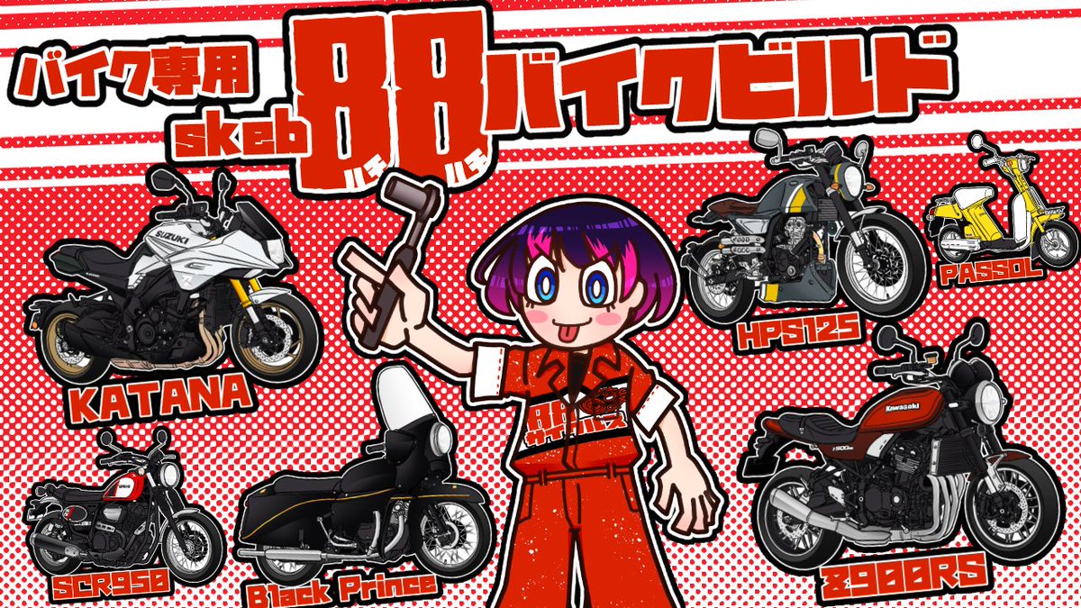 I'm doing a motorcycle-only skeb called "88 Bike Build"! Deformed illustration of your favorite bike in your favorite color! We can build any kind of motorcycle you want! Please contact us from here -> bit.ly/3cjHv8F #88cycles #Commission #Skeb