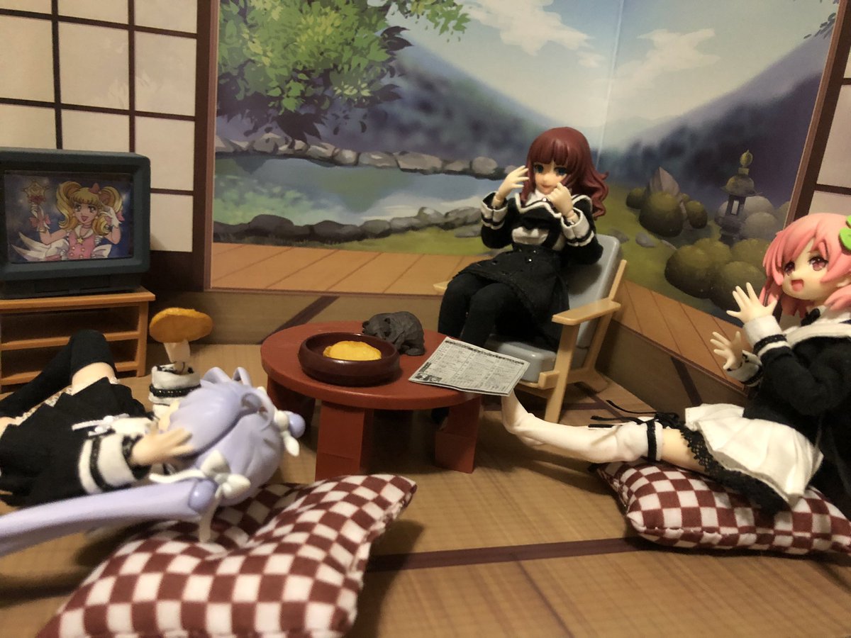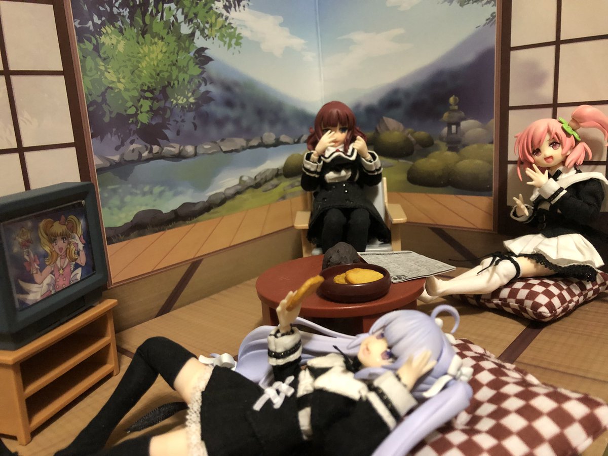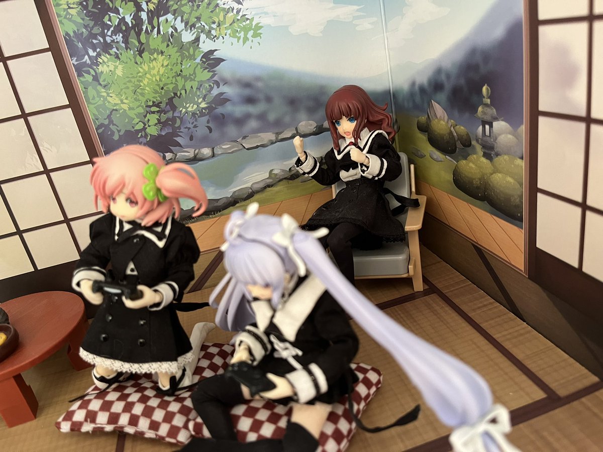 ダイソー寄ったらいい感じの背景ボードと座布団が売ってたので購入。和式部屋〜みたいな感じにしたくて小物はチマチマ買ってあったのでようやく形になったかも。 この部屋に早く芋ジャー着た一葉を置いてあげたい… #アサルトリリィドール部