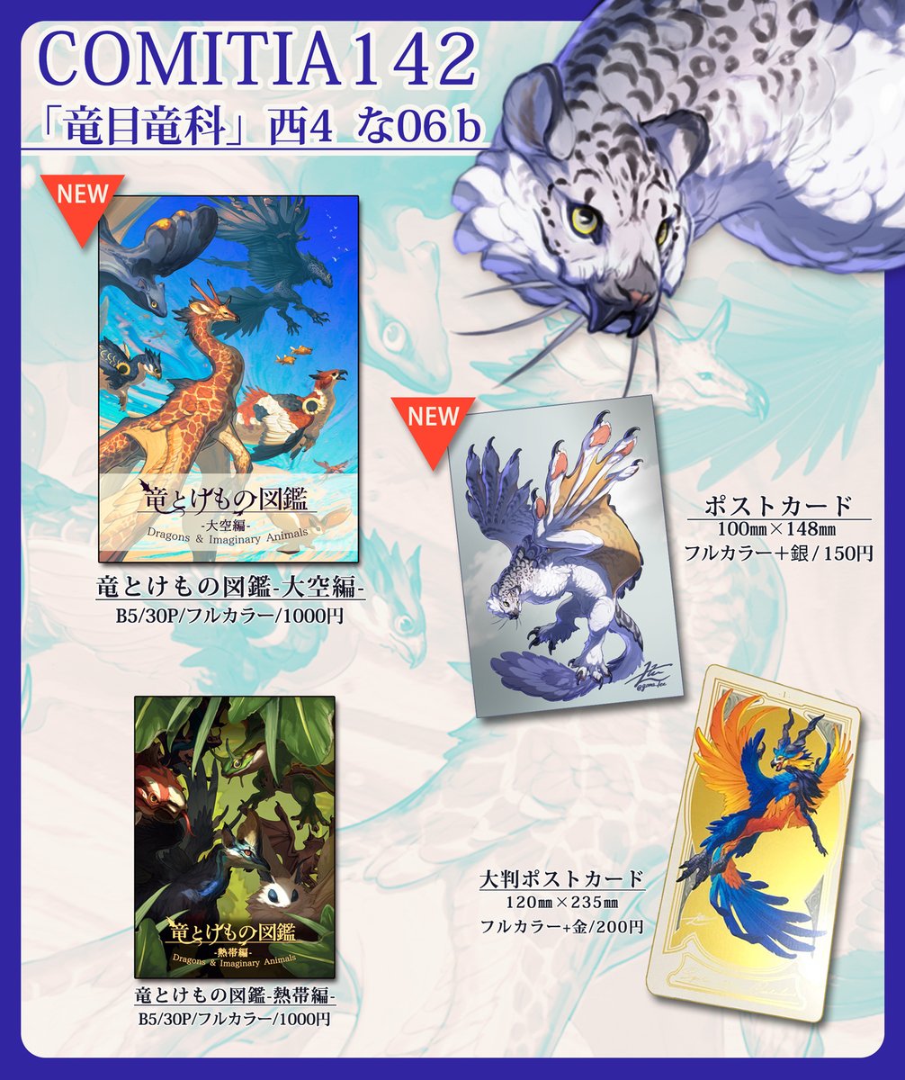 #C100 夏コミ新刊「竜とけもの図鑑-大空編-」脱稿しました〜!!今回は空に生息する、翼を持った生き物たちの生態図鑑です(全30ページ)🦅 下記リンクから通販予約も始まりましたのでぜひチェックしてください! alice-books.com/item/show/6404…