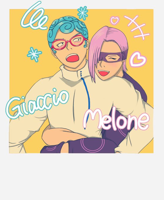 🍈と❄️がわちゃわちゃしている様子をポラロイドに収めてみました! ポラロイド風イラストに憧れて描いたけど結構難しいですね😅 #jjba #jjbafanart