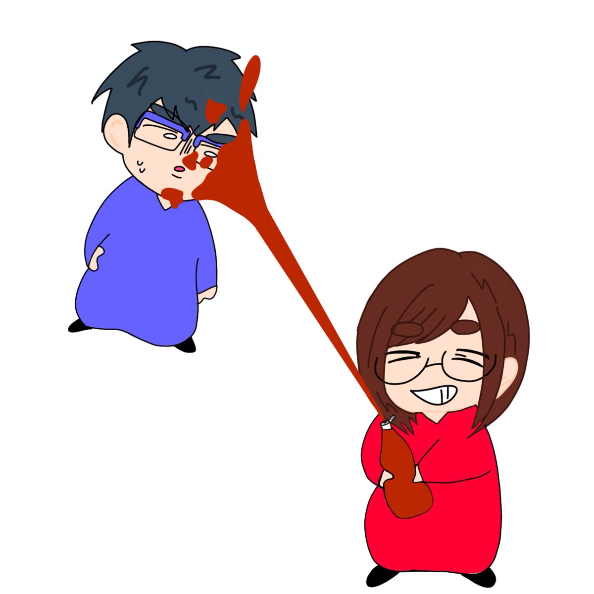 ケチャップをかけられるげんさんとそれを楽しむさやさん。 #なつめさんちの美術室 #なつめさんち