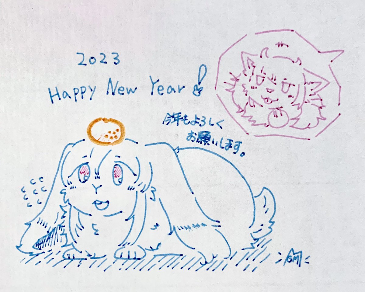 9 20 描き初めです🐰 🍊🐱)) 23/01/01 11:16