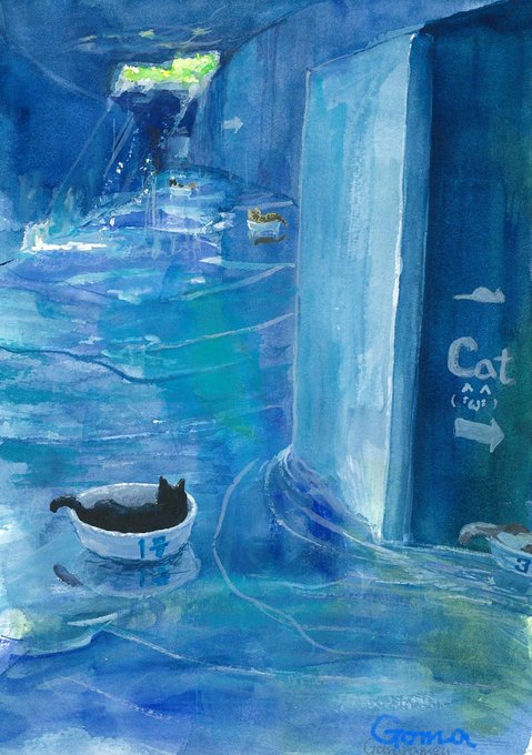 昔、ある方からお礼をいわれた。旦那さんが病床で私の絵を楽しみにしていたと。外に出ることができないので、私の絵を観て猫と空想の旅をしていたと。私の方がお礼を言いたかった。涙が出た。… twitter.com/i/web/status/1…