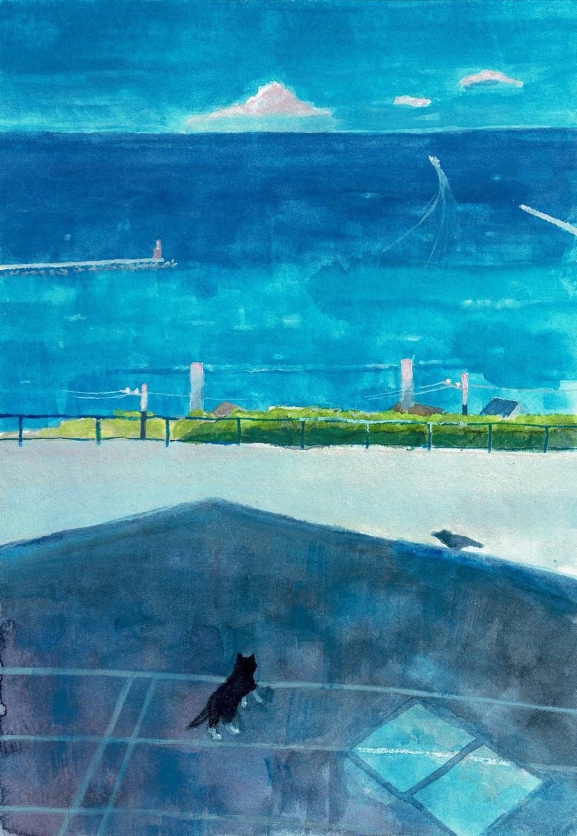 「気持ちの問題」 Twittermにあげた絵を眺めて、やっぱり海の色を直そうかなと思った矢先、誰かに「海の色を抑えればいいのに」とコメされて、絶対直さないと決意した絵がこちらになります。たぶん、やろうとしたのに「宿題やりなさい」と言われた小学生と同じ反応です。… twitter.com/i/web/status/1…