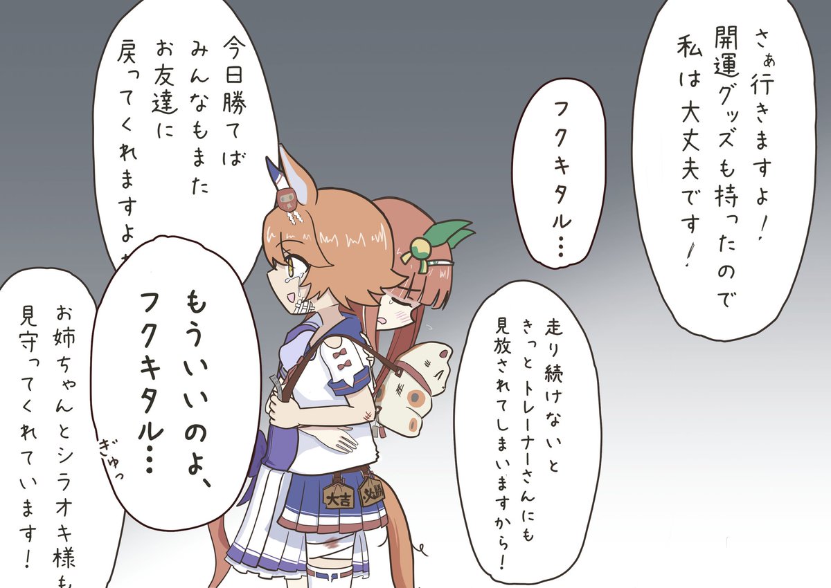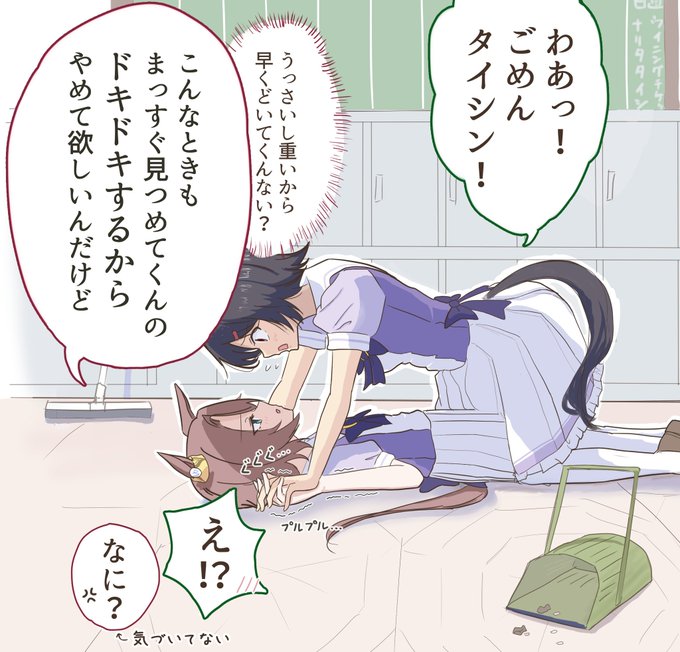 ドジなチケゾーに押し倒される度にムカつきながらも体格差とまっすぐな瞳を感じて無自覚にハートをズキュンドキュンされてしまうタイシン見たいなーってチケタイ描きました。 #ウマ娘 #ウイニングチケット #ナリタタイシン