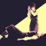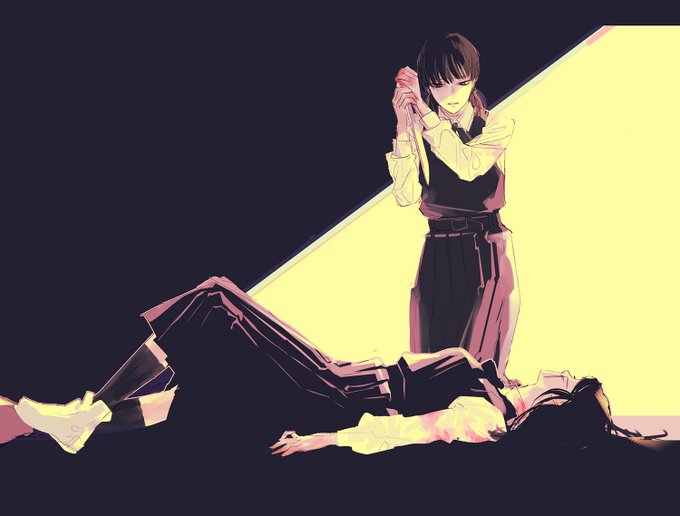 アサとヨル。 二部連載始まってまもない頃に描いていたもので、最期はアサがヨルにとどめ刺して終わらせてほしいという強引すぎる謎妄想絵ですが、物理的に干渉できない設定により没にしていたもの…表現不足が悔しいですが供養のためアップ🙏 #チェンソーマン #chainsawman