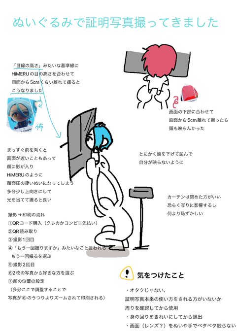ぬい証明写真けっこう難しかったので参考にどうぞ〜 正規の使用方法ではないので他の方の迷惑にならないように気をつけつつ…
