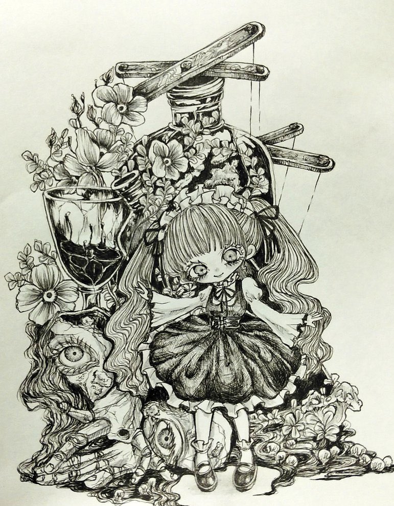 4 21 #illustration #イラスト #ペン画 「marionnette 」 23/05/25 16:14