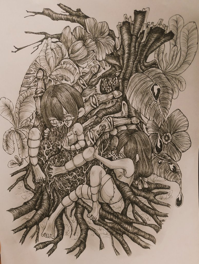 3 25 #イラスト #illustration #ペン画 「癒着」 23/06/14 21:10