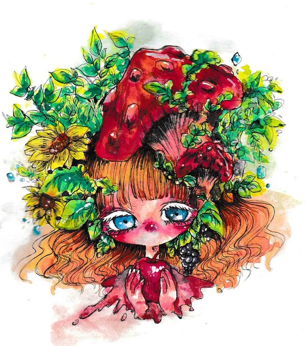 4 20 #イラスト #illustration #水彩画 キノコと少女 23/06/13 20:41