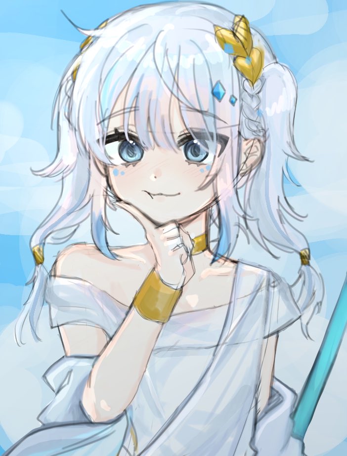#holoMyth #GURAPARTY #gawrt Sketch step 2! I changed the position of the headdress correctly, added jewels, changed the pose, and extended the bodies to draw! etc~