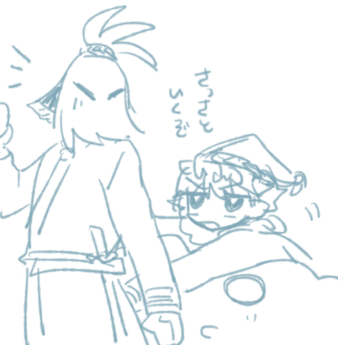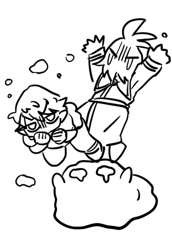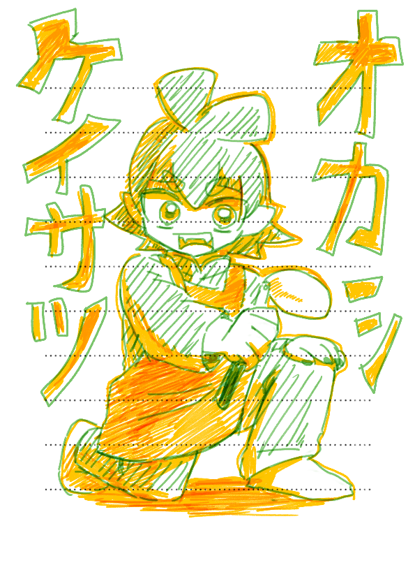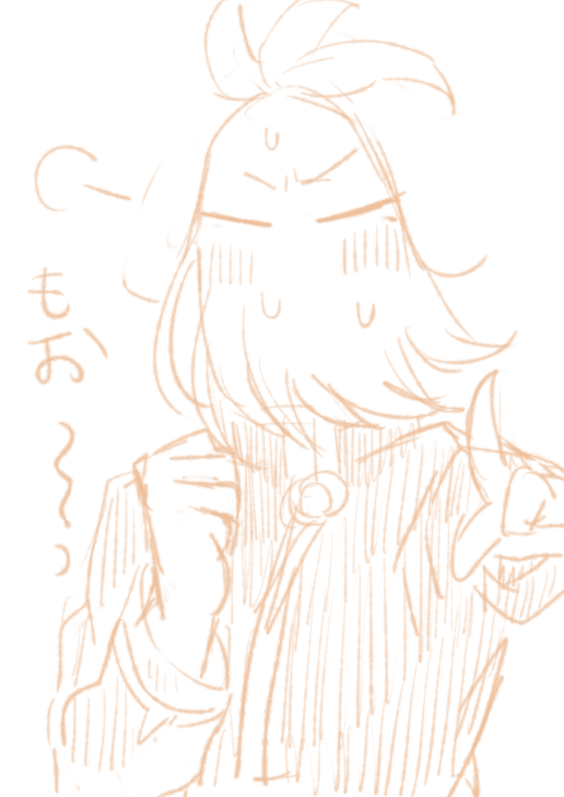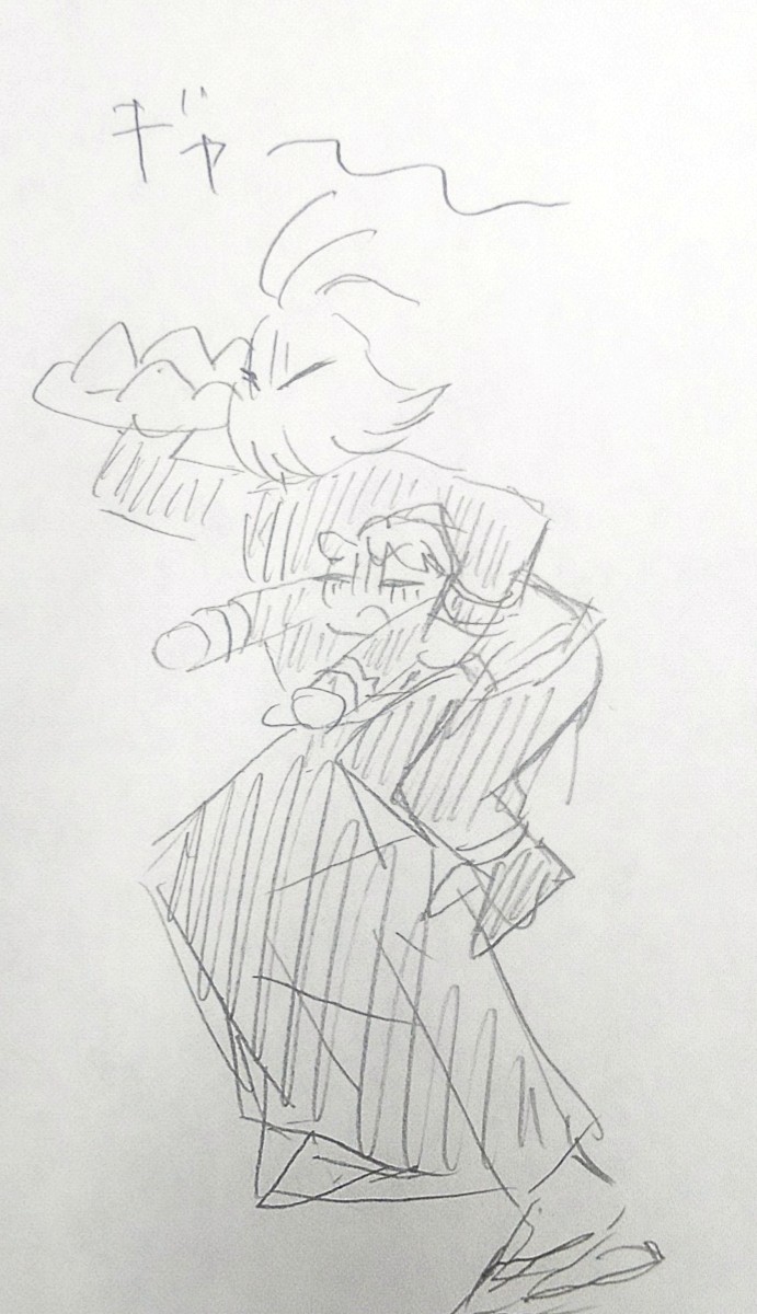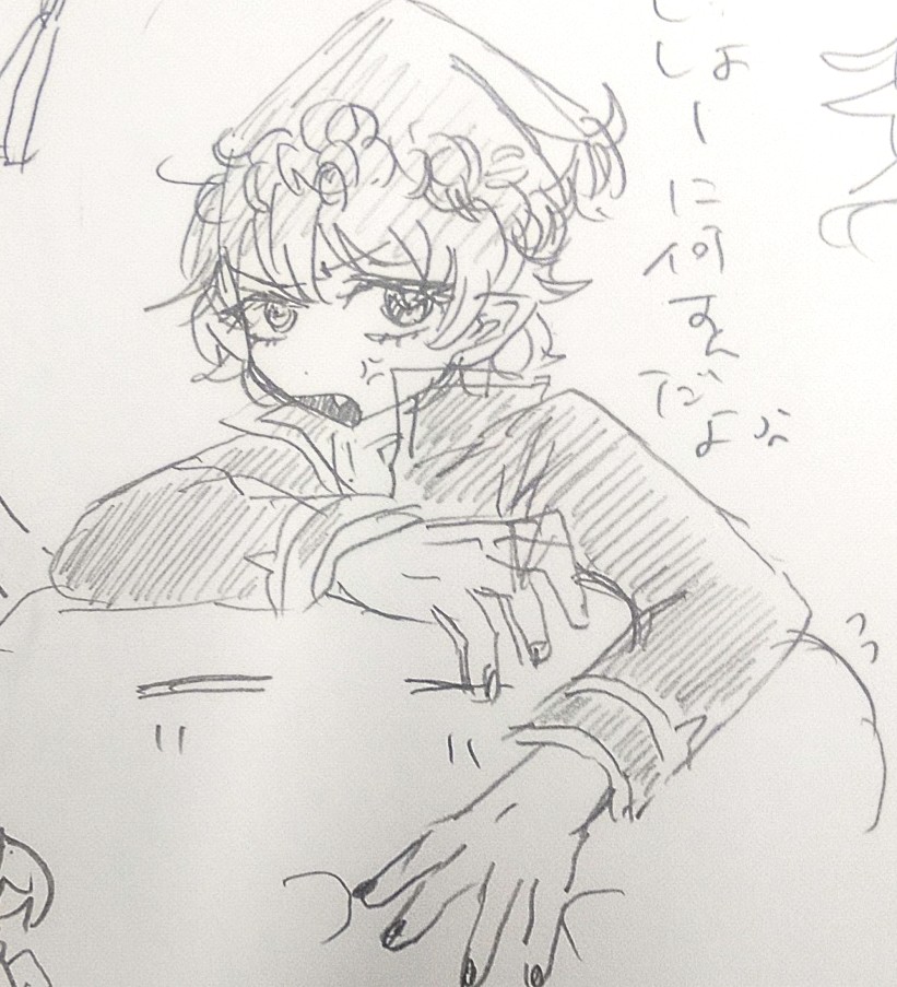 ざかざからくがきしててましだったやつ 「どうしたんでござるか?」「別にぃ」(初期の髪しっぽあるやつなに?)(成長後のびてても良いなあっていう)