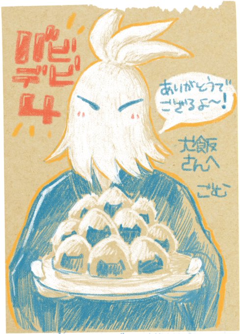7 26 エアスケブです! 犬飯さん(@dog_gohan)からのリクで【ガープくんとおにぎり】です~ エアスケブで急に初めてする描き方をしてしまった かわいいと思って……!リクありがとうございました! 22/10/16 20:58