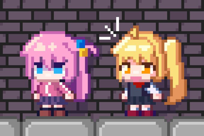 虹夏~~ #ぼっち・ざ・ろっく! #ぼっちざろっく #後藤ひとり #伊地知虹夏 #ドット絵 #Pixelart #女の子 pixiv.net/artworks/10522…