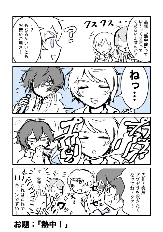 #ダンキラ版ワンドロライ お題《熱中!》 お題に対して変化球っぽい解釈になりましたがお許しください…。 どのストーリーか忘れたのですが、晶がレディたちにわざと無視されて「キョトンとしてるわ、かわい〜」みたいな感じで遊ばれていたのが印象深く、今回のネタに繋がりました。