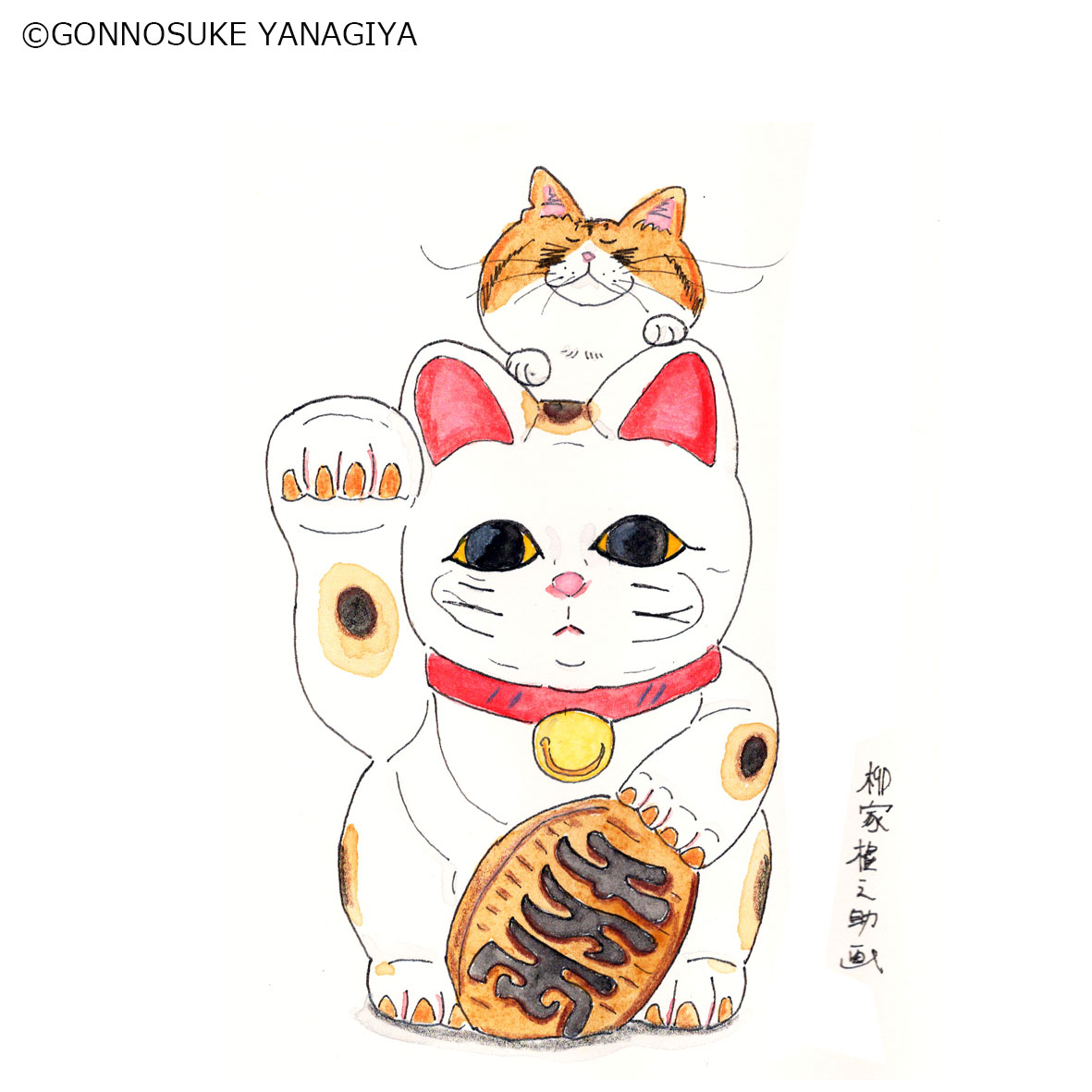 今日9月29日は招き猫の日なんだって。 929で“くるふく”語呂合わせ。 #招き猫 #招き猫の日 #イラスト #水彩画 #猫