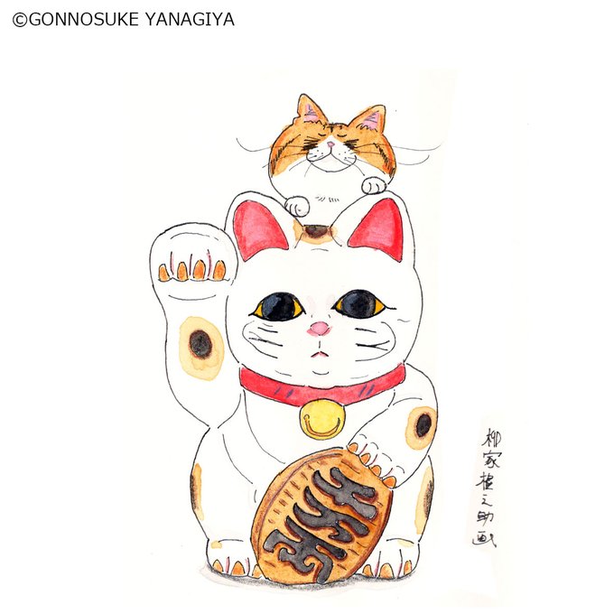 12 74 今日9月29日は招き猫の日なんだって。 929で“くるふく”語呂合わせ。 #招き猫 #招き猫の日 #イラスト #水彩画 #猫 22/09/29 17:11