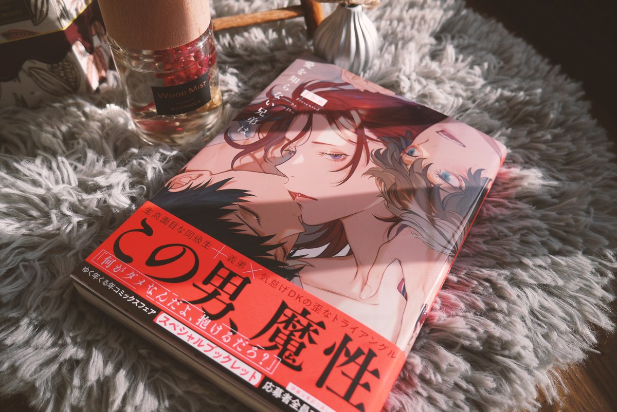 愛しらの紙の本を送っていただきましたやったーーーーーーー!!!!‼️‼️‼️‼️ハーバリウムみたいなかわいいのは編集さんが三人のイメージっぽいと同梱してくださったアロマなかわいい品物でうれしい...うれしーーーー三枚目の写真は帯外すと茜の乳首がある証拠写真 #愛を知らない兄弟は