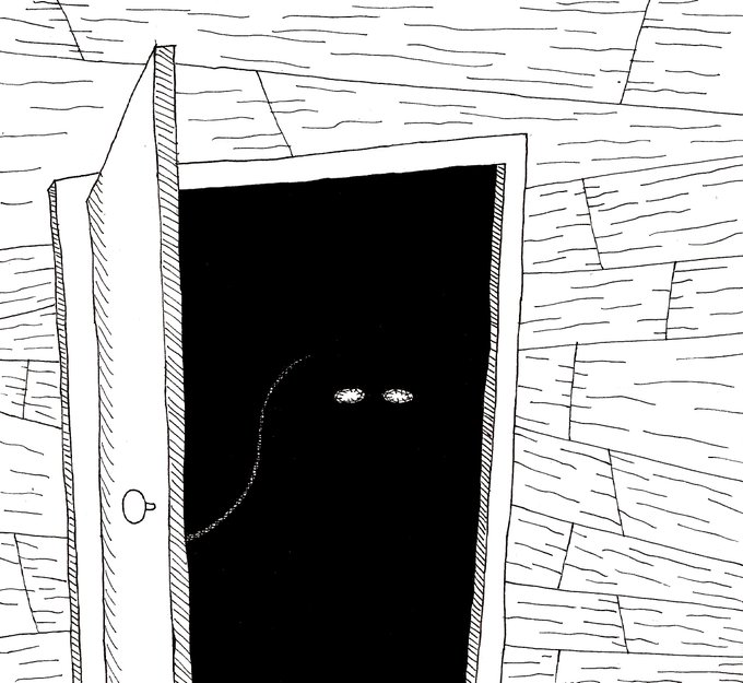 Inktober 2019 Day 26: Dark #Dark #door #darkness #creature #eyes #inktober #blackandwhite #crosshatching #penandink #ink #Inktober2019