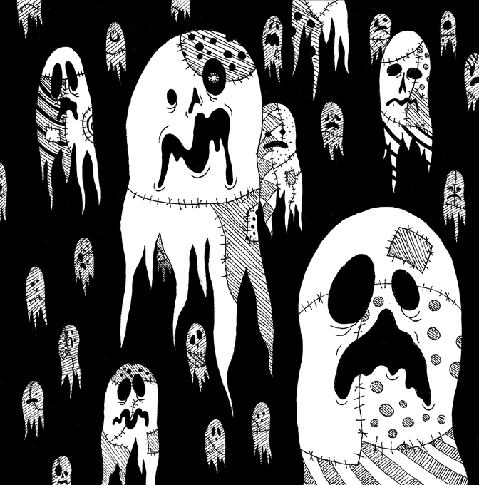 Inktober 2019 Day 22: Ghost #ghost #patchwork #inktober #halloween #sheetghosts #dead #crosshatching #blackandwhite #penandink #traditionalart