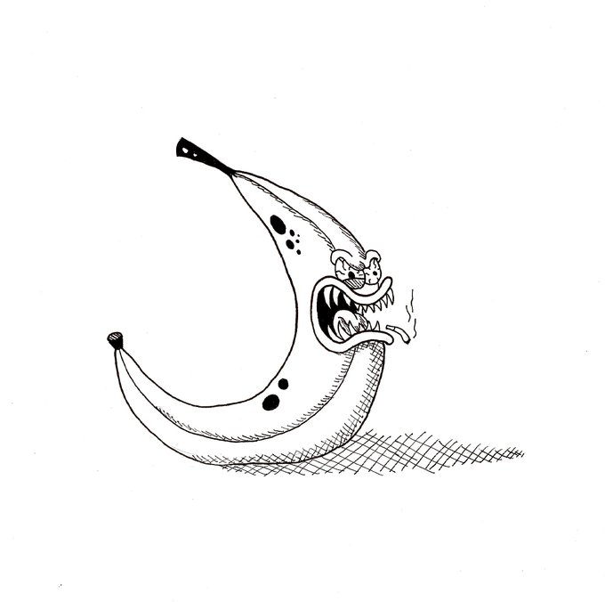 Inktober 2019 Day 31: Ripe #banana #fruit #ripe #halloween #inktober #inktober2019 #cigarettes #angry #traditionalart #crosshatching #happyhalloween