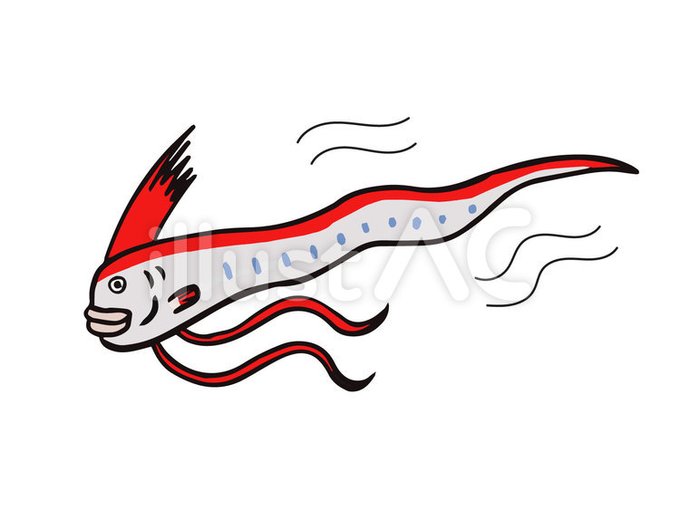 鳥取県でリュウグウノツカイが、発見されたらしいです。 めったに見ることができない深海魚で、大きい個体は体長8メートルにもなるそう。 8メートルって・・・かなり大きい😮‼️ 神秘的な魚 よかったらイラストお使いください😊 ac-illust.com/main/detail.ph… #イラストAC #イラスト