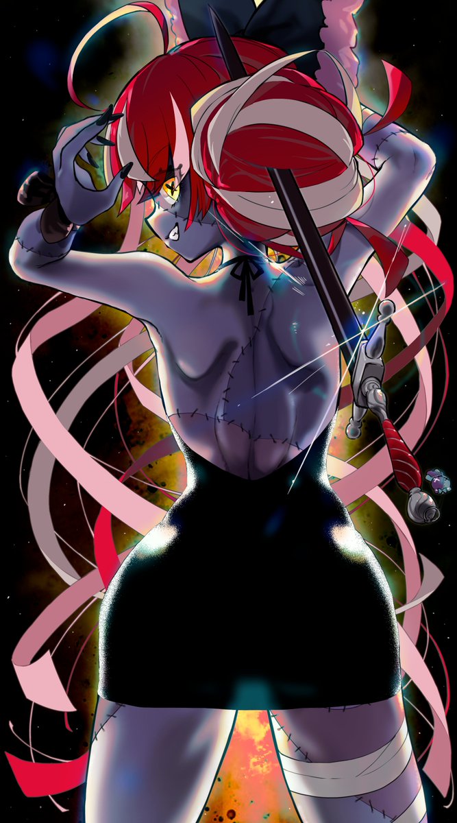 It's rare to see Ollie from behind so I asked @dantyo_neko to draw some of Ollie's best features😍 The use of light & colour is gorgeous, it really sparkles✨✨ Love Ollie with hair up & nape visible but her other bun unraveling in the background is just so pretty🥰 #GraveyART