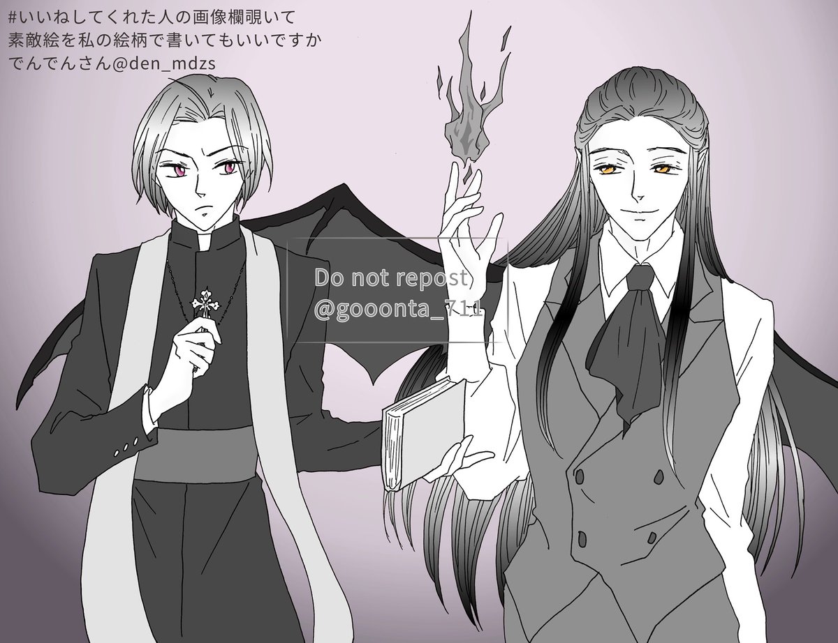 遅くなりましたが、例のタグ3つ目 でんでんさんの🦇曦澄⛪️描かせていただきました! 全身は断念しましたが描いててとても楽しかったです☺️ でんでんさんありがとうございました🙇♀️✨ twitter.com/den_mdzs/statu…