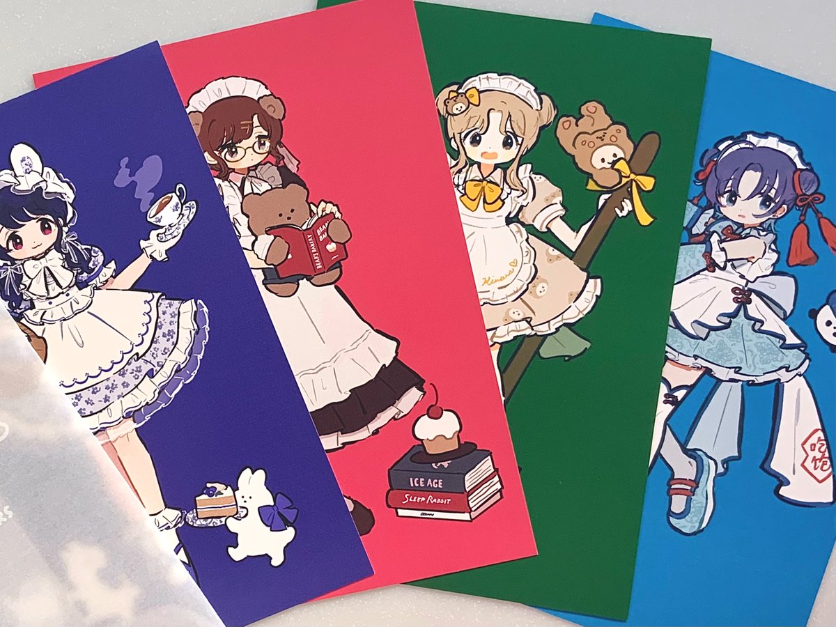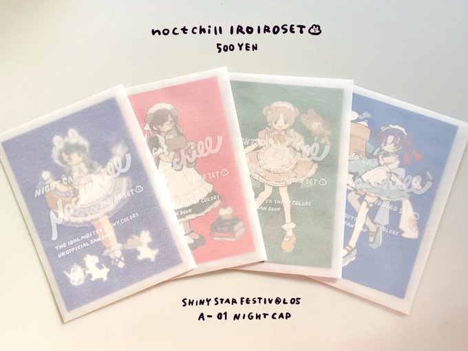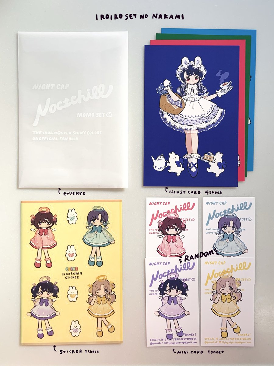 51 170 中身です イラストカードが4枚、クリアシールが1枚、奥付け的なミニカードが1枚(絵柄ランダム)が封筒にはいっています! #SSF05 22/10/13 20:53