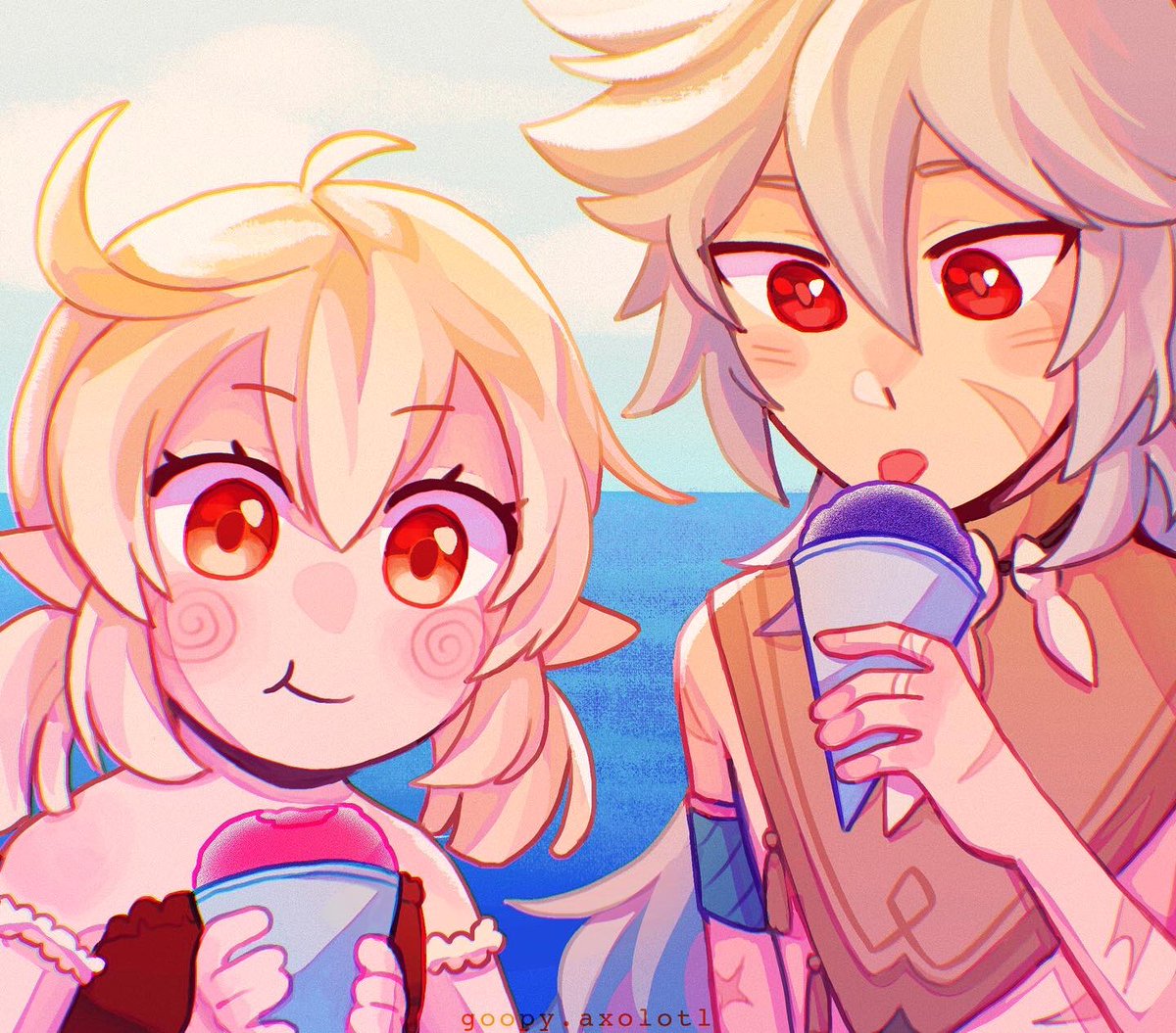 Snow cones!! 🍧 (2/3) #klee #razor #Genshin_Impact #genshinimpactfanart #kleefanart #razorfanart #razorgenshinimpact