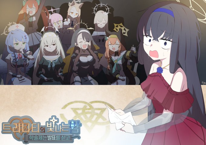 신규 이벤트 "트리니티의 빛나는 밤~학술제는 발표를 싣고~" 개최 예고! 농담입니다 죄송합니다 #ブルアカ