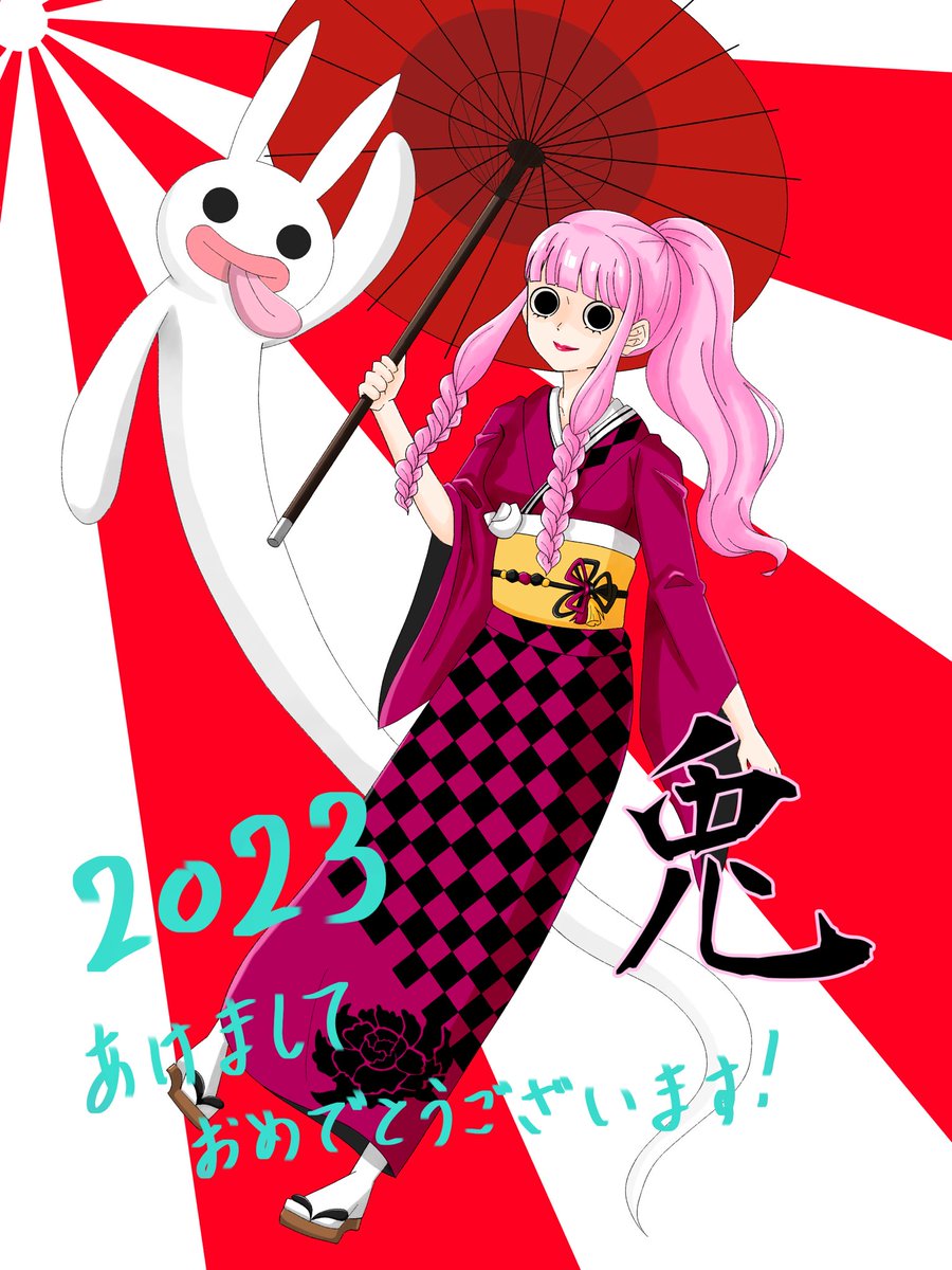 あけましておめでとう! 今年は叫びっぱなしの1年にしたい! #2023年 #イラスト #兎 #ワンピース #ペローナ