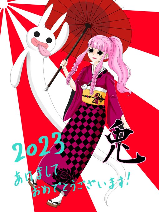 2 6 あけましておめでとう! 今年は叫びっぱなしの1年にしたい! #2023年 #イラスト #兎 #ワンピース #ペローナ 23/01/01 00:31