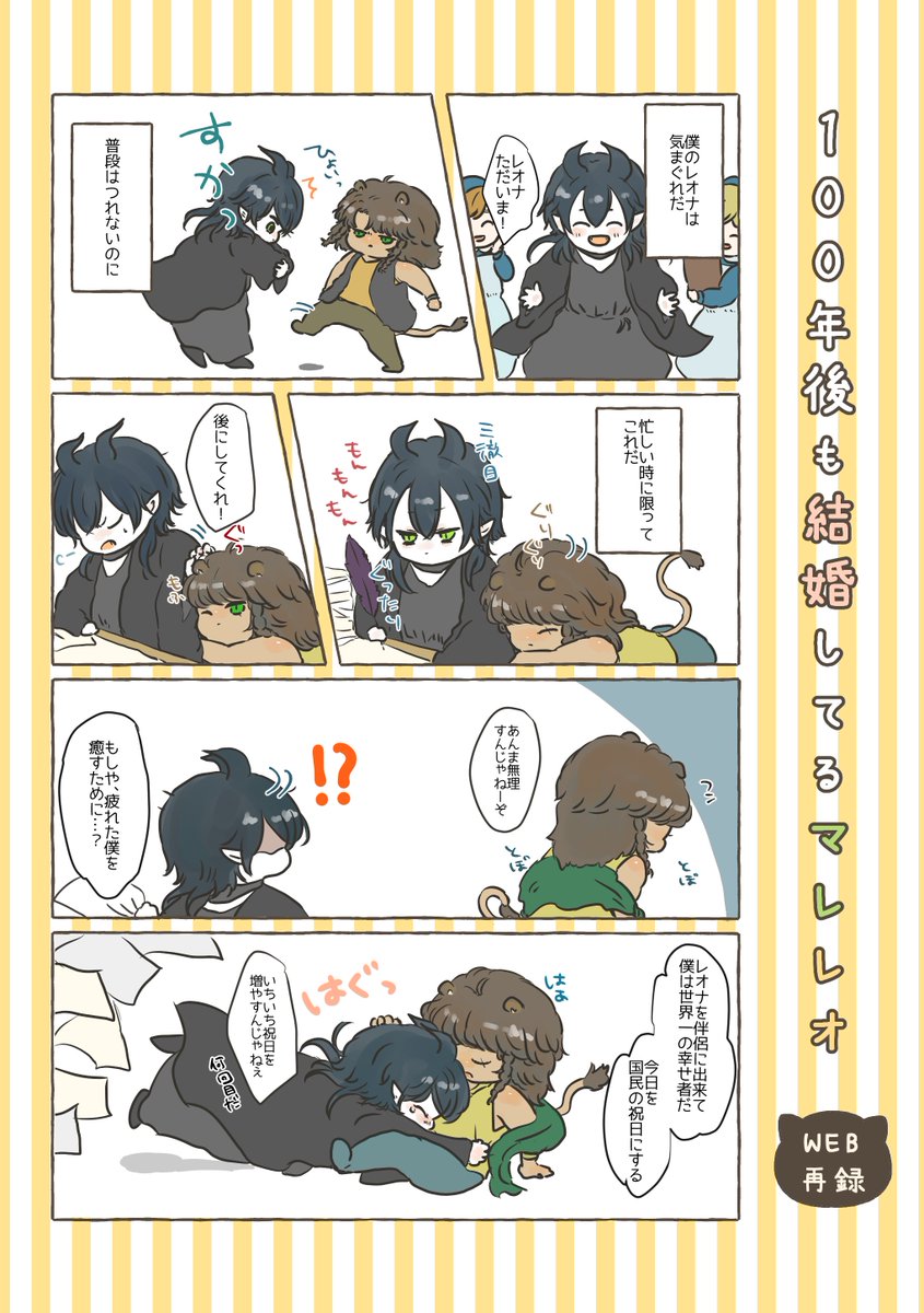 7/11の新刊サンプル📚 100年後も結婚してるマレレオWEB再録 A5/52p/本文フルカラー/¥700(半分くらい描き下ろし)良かったらよろしくお願いします🙇 pixiv.net/artworks/91039…