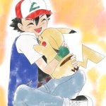 ついにサトシとピカチュウの旅も最終回か... 久しぶりにポケモン観るわ サトシ、26年間おつかれさま✨✨ ありがとうー!! #アニポケ #サトシ #ピカチュウ #イラスト