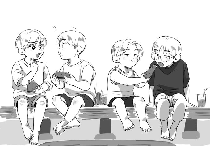 🍊「ジュニヒョンファイティーン!!」 👼「ヘアゴム忘れた…無理暑い…死ぬ」 🐰「今日に限って忘れたの?てか、髪大変なことなってる」 🐴(ジョンハニヒョン凄く暑そう…)